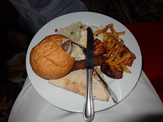Then comes the local fast food. You can eat a weeks worth of these for the same price as the burger in the picture above! Basic make up is pasta, lentils, chickpeas, herbs and some other stuff with some ‘salsa/tomato sauce’ on the side. Being an arab country, my assumption was their spicy would be a mere mild in comparison to my now adapted Pako-indi-bangla-Syrian tastebuds… but they weren’t! On the bright side, I discovered I was immune to local water! Alhamdulillah!
