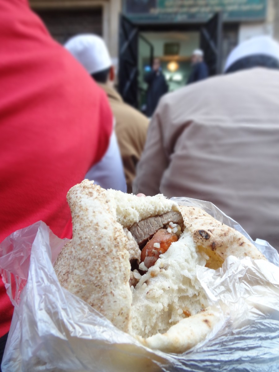 DSC03133 Published February 25, 2012 at 3456 × 4608 in Back to the beginning ← Previous Next → At the Mawlid at the Madyafah, they give out bread filled with meat and rice to each person who attends.